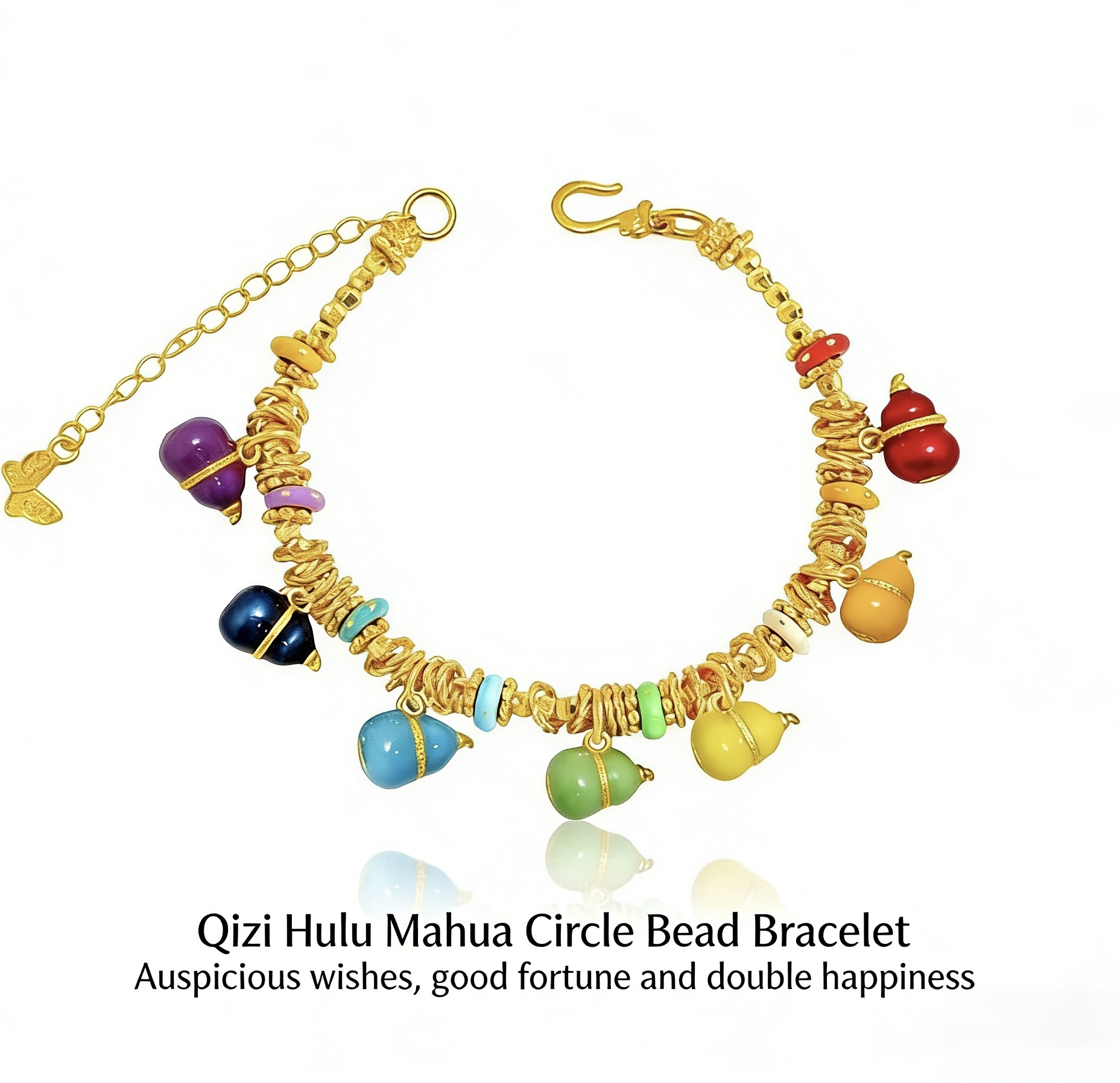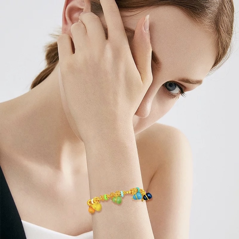 Be the first to review “24k sand gold enamel color seven-son gourd coil wrapped bracelet new Chinese twist whirlpool jump Di Zhu Fulu bracelet” Cancel reply