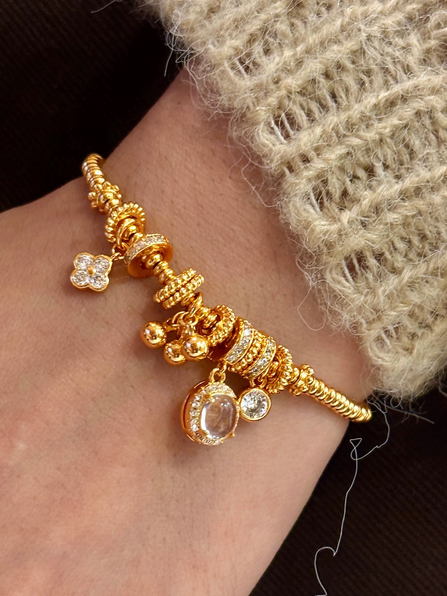 Be the first to review “24k sand gold white zircon pigeon egg four-leaf clover coil wrapping bracelet fashion jewelry” Cancel reply
