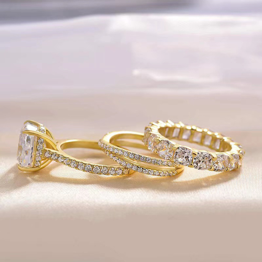 925 sterling silver 5A zircon wedding ring combination ring female European and American cross-border 10*10 ice flower cut simulated diamond ring bracelet