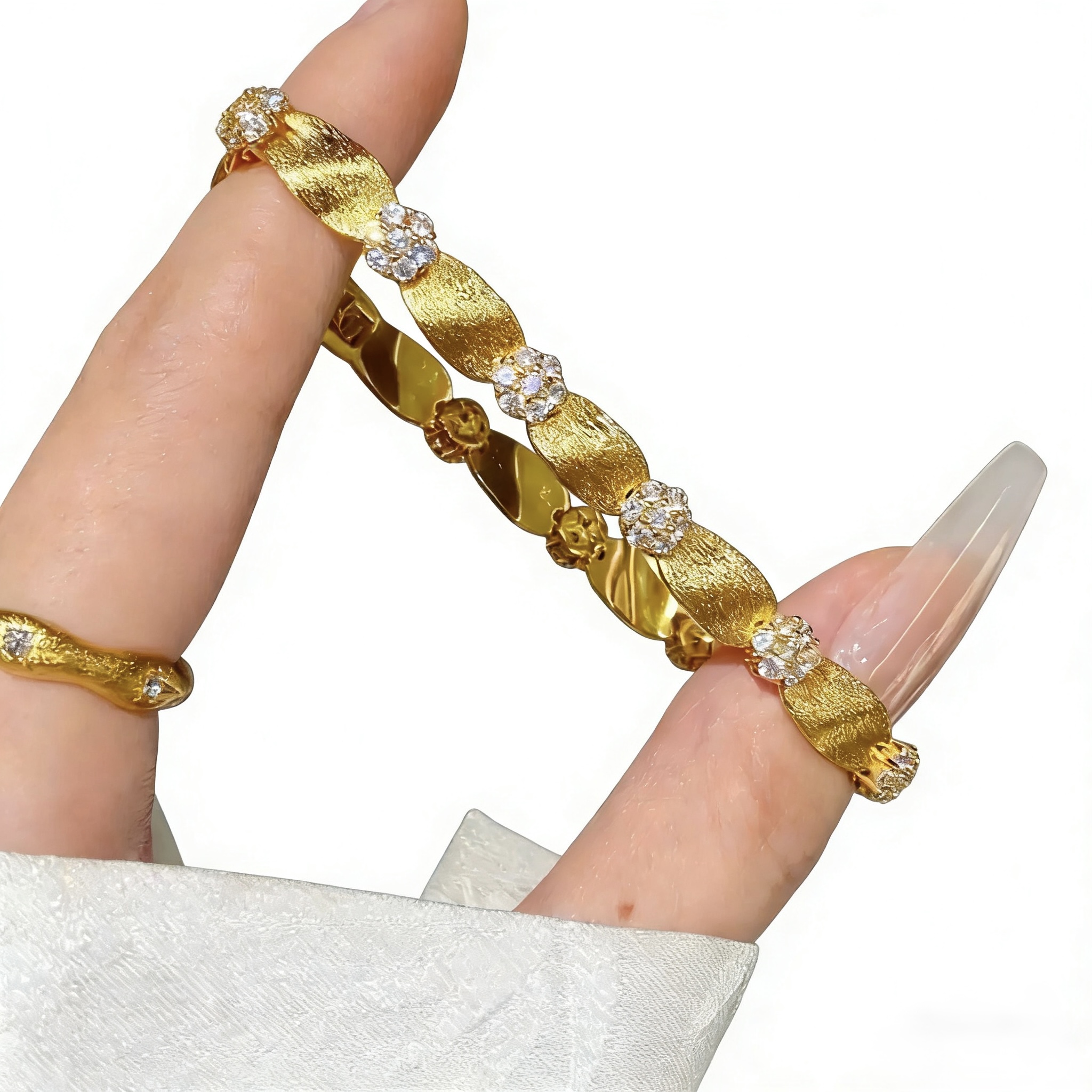 French 24k sand gold zircon-inlaid brushed satin bracelet women’s high-end temperament fashion and versatile bracelet