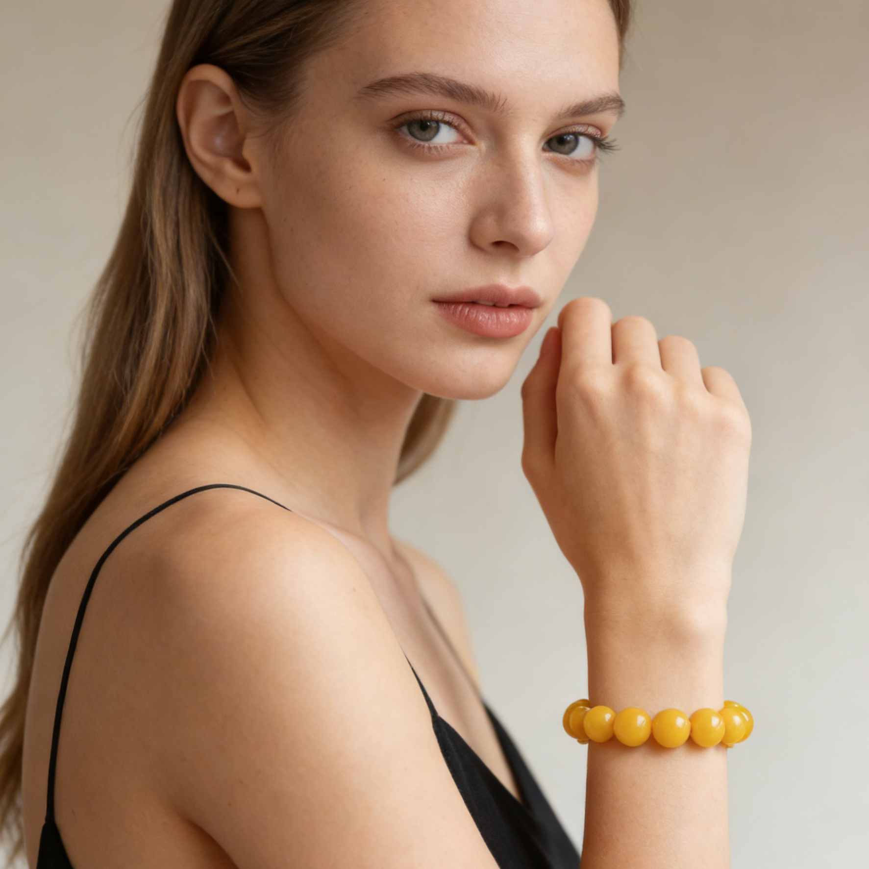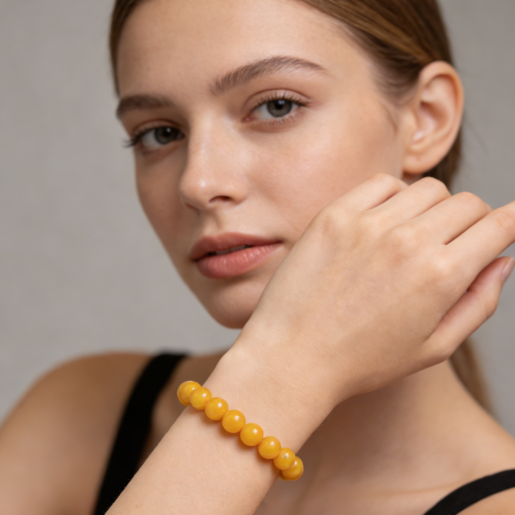 Luxury Minimalist Natural Amber Bracelet – Handcrafted Crystal Bead Bracelet for Protection & Positive Energy