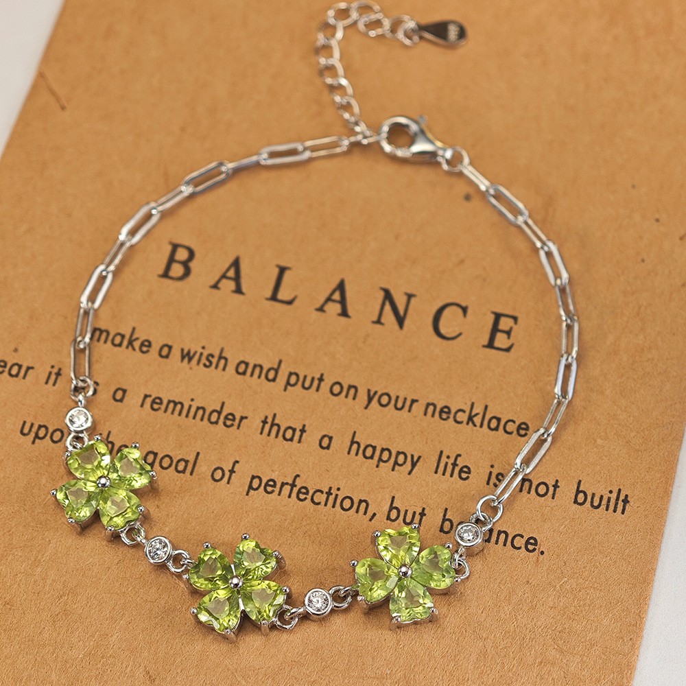 Natural peridot four-leaf clover lucky bracelet S925 sterling silver light luxury niche design