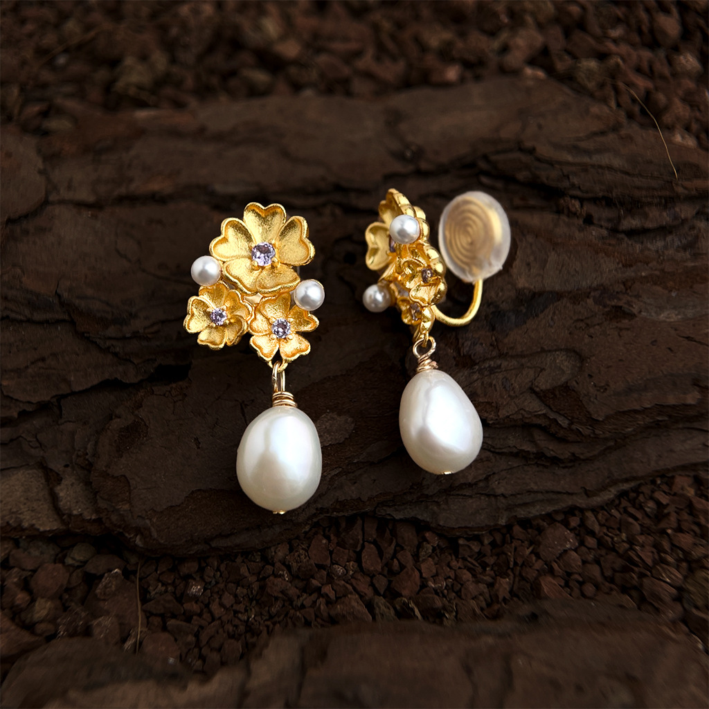 Be the first to review “Thick plated 18K real gold baroque freshwater pearl purple zircon flower earrings Fashionable and elegant high-end earrings” Cancel reply